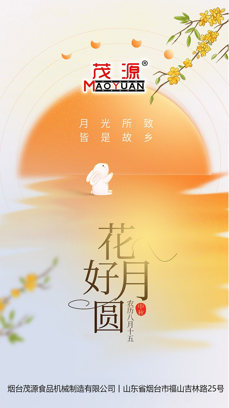 明月寄相思,佳節(jié)慶團圓。在這個溫馨滿溢的中秋佳節(jié),煙臺茂源食品機械向您致以最誠摯的祝福!