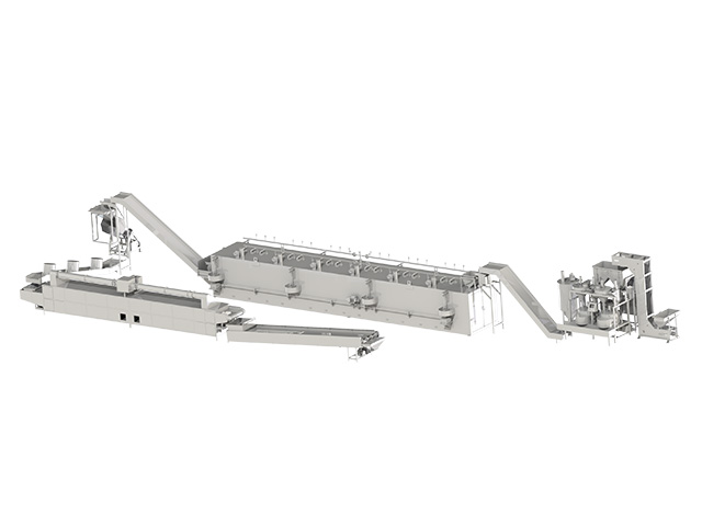 該生產線廣泛應用于花生、青豆、蠶豆、大豆等堅果仁、豆類、籽仁裹衣烘烤加工。自動化生產,連續進出,實現1人多機,1鍵式操作,減少了人工強度及技術依賴性,保證了產品質量穩定性。 工藝流程:簡易型:原料→裹衣→烘烤→拌料液體→干燥 原料→一次裹衣→烘烤→冷卻→二次裹衣→拌料(調味或掛糖)→干燥→冷卻